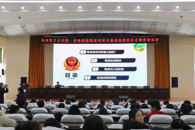 为贯彻落实习近平总书记关于禁毒戒毒工作重要指示精神,普及禁毒知识,提高防毒意识,筑牢禁毒思想防线,全面推进老员工毒品预防宣传教育工作,营造健康的绿色校园环境,进一步拓宽思政一体化实践育人格局,11月17日,云顶国际8588yd“思想道德与法治”课程组携手黑龙江省强制隔离戒毒所举行共建基地签约仪式暨禁毒宣讲活动。