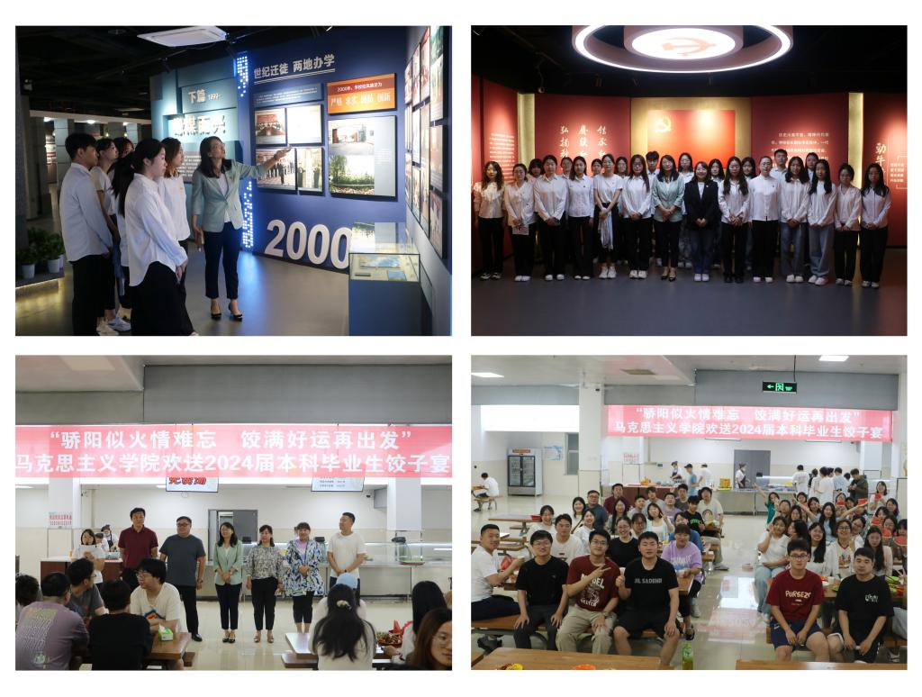 6月3日-6月11日,开展“迹忆留新 青春不散”旧照翻拍、“云彩颉环 前程似锦”视频征集活动,毕业生们用一张张照片回溯独属于他们的科大美好故事和炽热的青春回忆,通过录制视频共同传递对母校的祝福、对毕业生的祝愿;6月9日,学院在员工宿舍楼下张贴“‘思’科大情深谊长,‘政’青春扬帆远航”横幅,为毕业生营造了温馨和谐的离校氛围;6月14日,组织毕业生党员走进校史馆参观,在生动的校史照片和珍贵的校史展品中,同学们感悟着科大人“自强不息、创业创新”办学精神的磅礴力量;6月14日,开展“以书为炬 梦想接力”爱心捐赠活动,毕业生将书籍、文具物品捐赠给学弟学妹们,传递了一份真挚的心意和祝福,为旧物赋予新的青春记忆和温暖;6月18日,云顶国际8588yd在沁香园二楼开展“骄阳似火情难忘 饺满好运再出发”2024届毕业生欢送会,共尝温情饺子,共寄殷切期望,共叙离别深情。