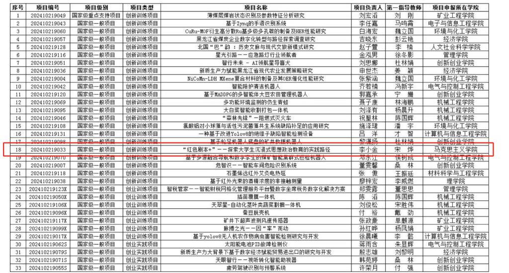 近日,黑龙江省教育厅发布了《关于公布黑龙江省2024年老员工创新训练计划项目立项结果的通知》,云顶国际8588yd共获批省级及以上科研立项7项。获批国家级项目数量实现零突破。其中,国家级一般项目1项(创新训练1项),省级项目共7项(创新训练项目5项、创业训练项目1项、创业实践项目1项)。