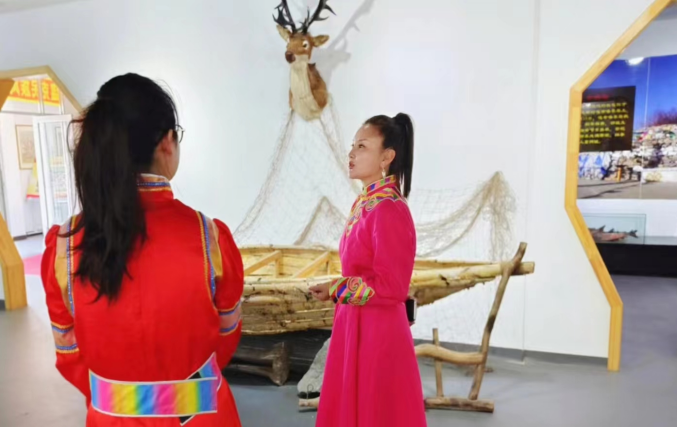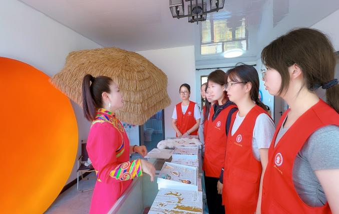 实践团先后前往鄂温克族文化体验区及索伦村民俗馆。在这里,成员们了解国家级非物质文化遗产瑟宾节的传统民俗,欣赏鄂温克族瑟宾节文创产品,体验鄂温克族传统服饰。索伦村民俗馆用最具民族特色的主题场景直观展示了鄂温克民族的分布情况,一件件展品是生动的历史画卷向实践成员们讲述着鄂温克族的历史变迁与民族文化。实践团成员们不仅感受到鄂温克族的历史渊源和丰富多彩的民族风情,更体会到鄂温克族人骁勇善战,坚韧不拔的民族精神。