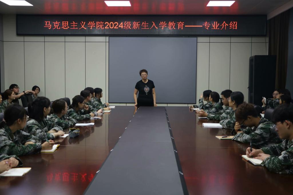 思政系主任吴莹辉结合专业特点,围绕专业培养方案、教学课程设置、实习实践安排、就业前景、专业团队队伍等方面向新生做了详细介绍。会上,吴莹辉针对专业学习向新生提出三点建议:一是要明确专业发展方向,做好学业规划,强化自身学习能力,提升专业素养;二是充分利用学习资源,深化拓展理论知识,适应大学学习新模式,注重自学能力和创新思维培养;三是要积极探索实践,用行动印证理论知识,学以致用,知行合一。