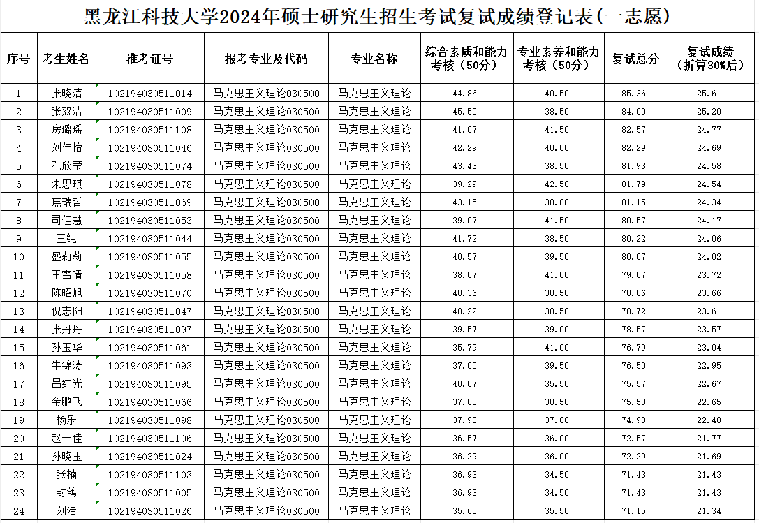 云顶国际8588yd2024年硕士研究生招生考试马克思主义理论专业第一志愿复试结果公示